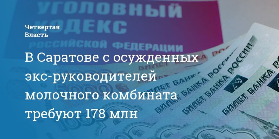В Саратове с осужденных экс-руководителей молочного комбината требуют 178 млн