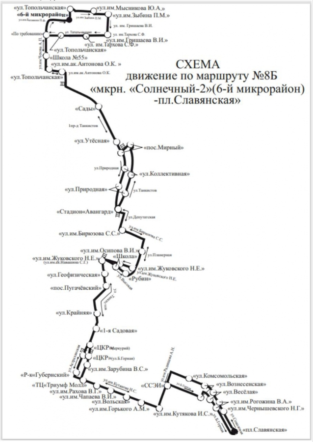 Другой маршрут №8Б свяжет микрорайон Солнечный-2 и Славянскую площадь, работать на нем будут до 13 автобусов большого класса. В летнее время года до 9. Интервал движения составит 10 минут в час пик и 10-20 минут в межпиковое время. Летом в часы пик 14 минут, в межпик – 14-28 минут. Время работы с 5.10 до 23.30.