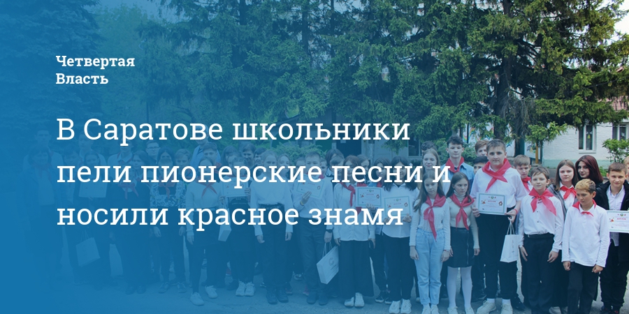 В Саратове школьники пели пионерские песни и носили красное знамя