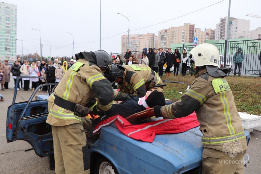 Затем пожарные специализированной пожарно-спасательной части продемонстрировали мастер-класс по спасению человека в ДТП.