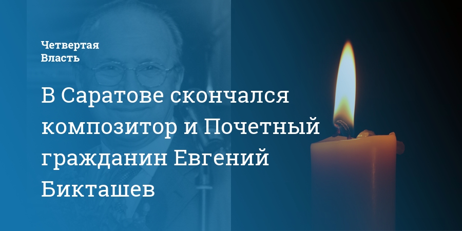Сегодня, 24 января, в Саратове на 85-м году жизни скончался художественный руководитель областной концертной организации «Поволжье» Евгений Бикташев. Композитор являлся Почетным гражданином Саратова и Саратовской области, народным артистом России, заслуженным артистом РСФСР.