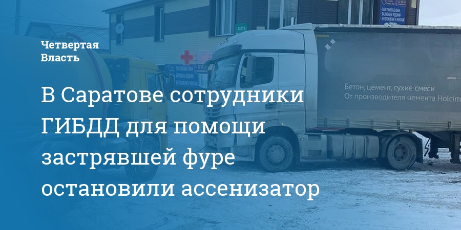 В Саратове сотрудники ГИБДД для помощи застрявшей фуре остановили ассенизатор