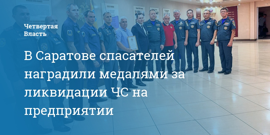 В Саратове спасателей наградили медалями за ликвидации ЧС на предприятии