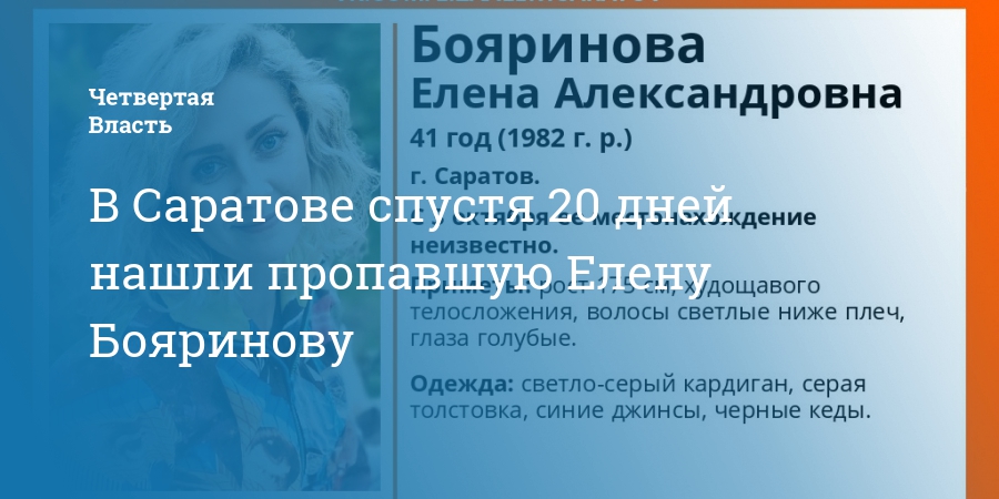 В Саратове спустя 20 дней нашли пропавшую Елену Бояринову