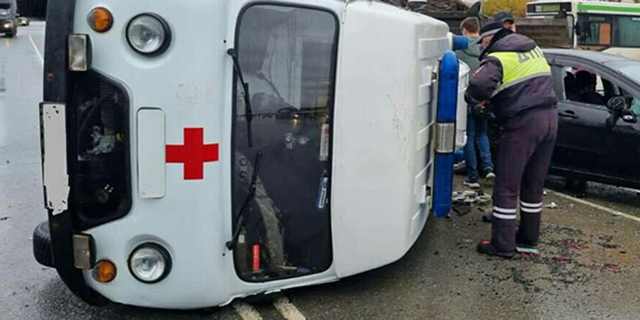 Авария случилась около 13.10 на перекрестке неподалеку от поселка Красный Октябрь. Здесь столкнулись легковушка «Пежо» и неотложка на базе микроавтобуса «УАЗ». От удара последняя опрокинулась набок.