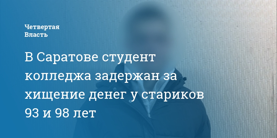В Саратове студент колледжа задержан за хищение денег у стариков 93 и 98 лет
