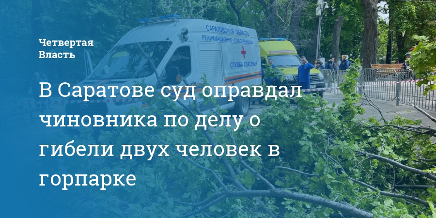 Октябрьский суд Саратова оправдал заместителя главы района Антона Хриченко по делу о гибели в горпарке ребенка и пожилой женщины из-за упавшего дерева. Об этом «Четвертой Власти» рассказали в пресс-службе суда.