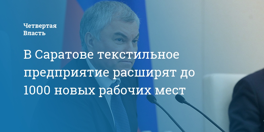 Предприятие по производству текстиля в Саратове расширят до 1000 новых рабочих мест. Об этом во время недавнего визита в регион заявил председатель Государственной думы Вячеслав Володин, запись опубликовали его сторонники.