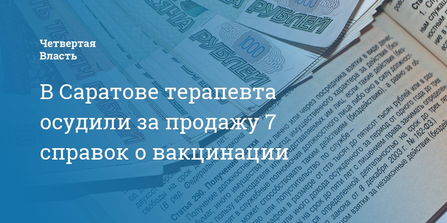 В Саратове терапевта осудили за продажу 7 справок о вакцинации