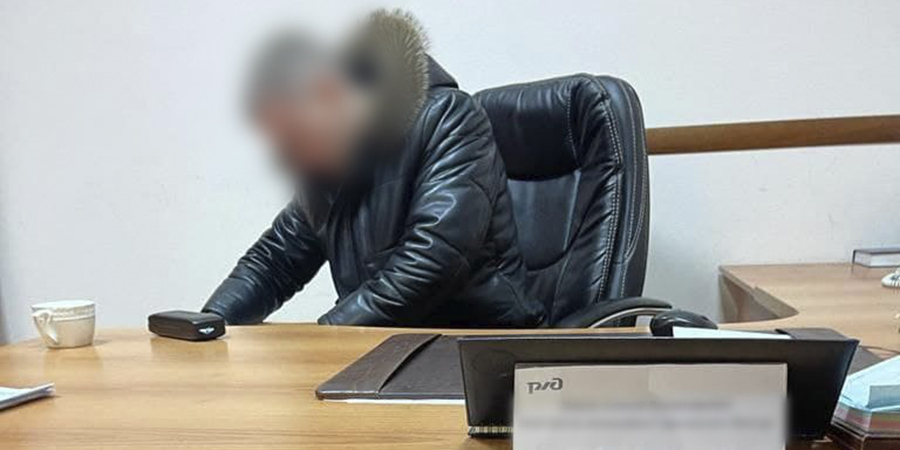 Судя по фотографии ФСБ, задержанный может быть связан с РЖД, на кадре видна у него на столе табличка с логотипом этой компании.