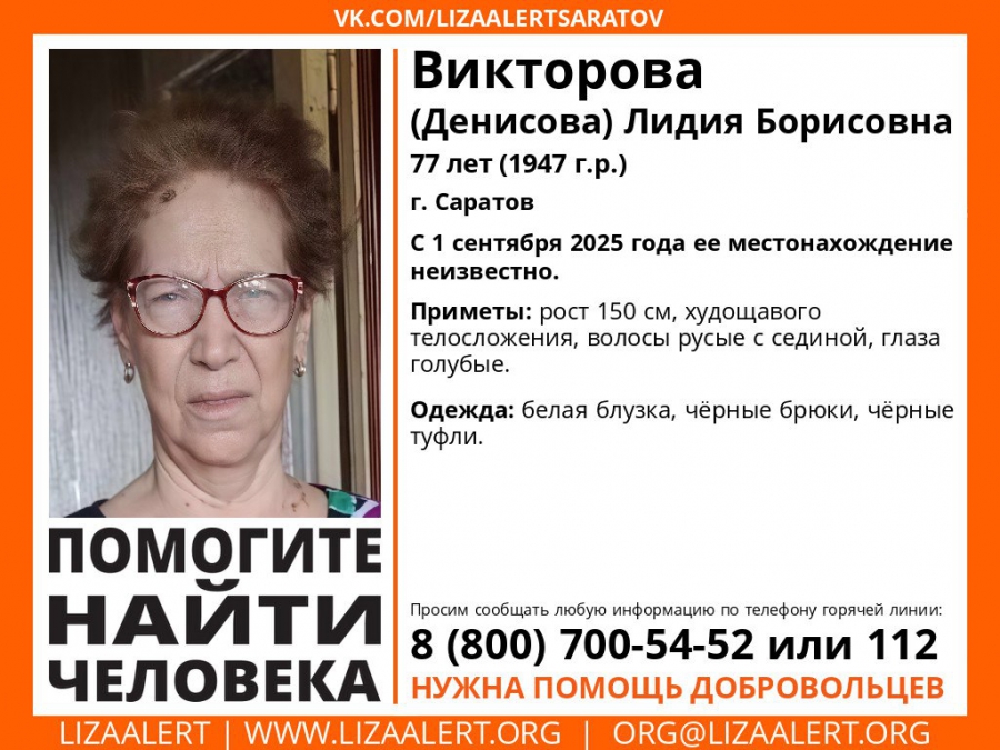 В Саратове третий день ищут без вести пропавшую Лидию Викторову (Денисову). Об этом рассказали волонтеры поискового отряда «Лиза Алерт».