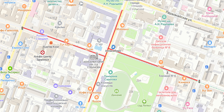 - улица Радищева (от Сакко и Ванцетти до Театральной площади);