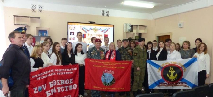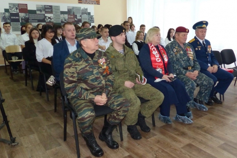 Затем для старшеклассников школы провели урок мужества, посвященный Дню героев Отечества. На встрече присутствовали члены Боевого Братства района, в числе которых участники СВО и их родственники.