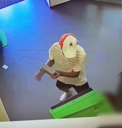 Судя по записи с камеры видеонаблюдения, мужчина вооружился прямоугольной каменной плиткой и принялся с усилием стучать ей по аппарату. После непродолжительного избиения банкомата гражданин бросил свою затею, протер руки и скрылся, оставив орудие на месте преступления.