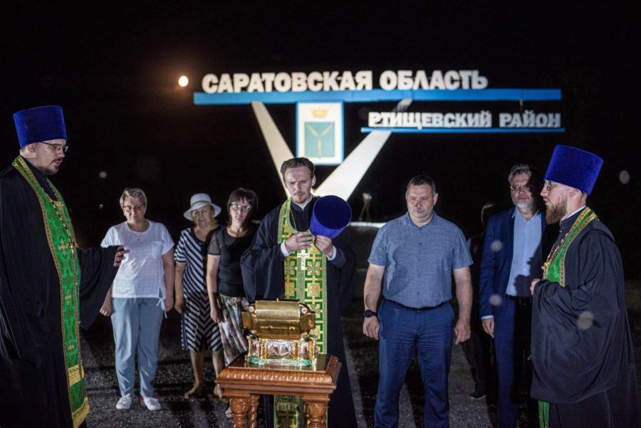 В пресс-службе епархии рассказали, что святыню встретили из Тамбова на границе Саратовской области, у села Репьевка Ртищевского района. Затем в сопровождении ГИБДД священнослужители доставили ковчег в Покровский собор Саратова. Здесь прошла встреча с участием митрополита Саратовского и Вольского Игнатия и врио губернатора Романа Бусаргина.