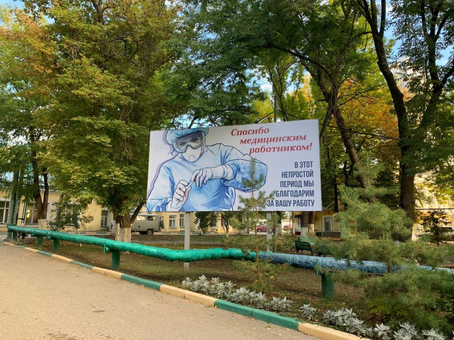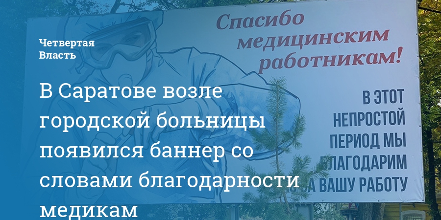 В Саратове возле городской больницы появился баннер со словами благодарности медикам