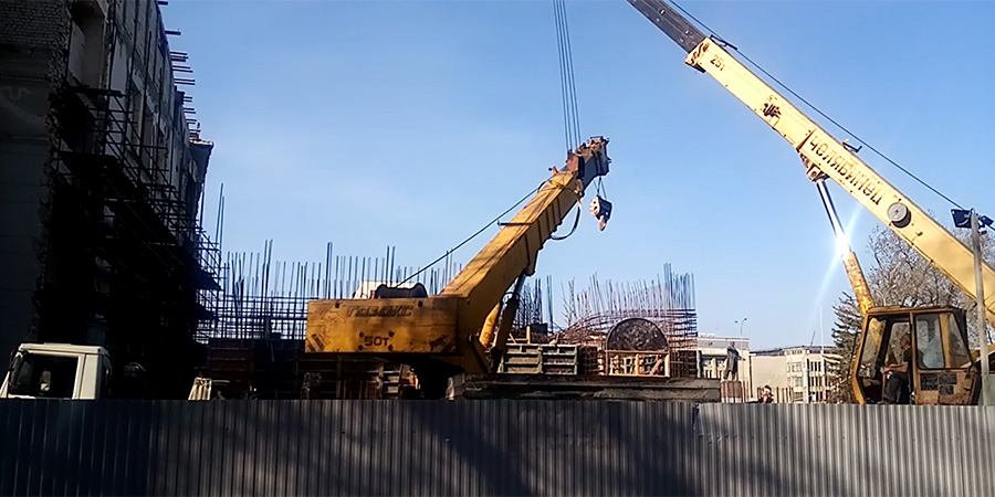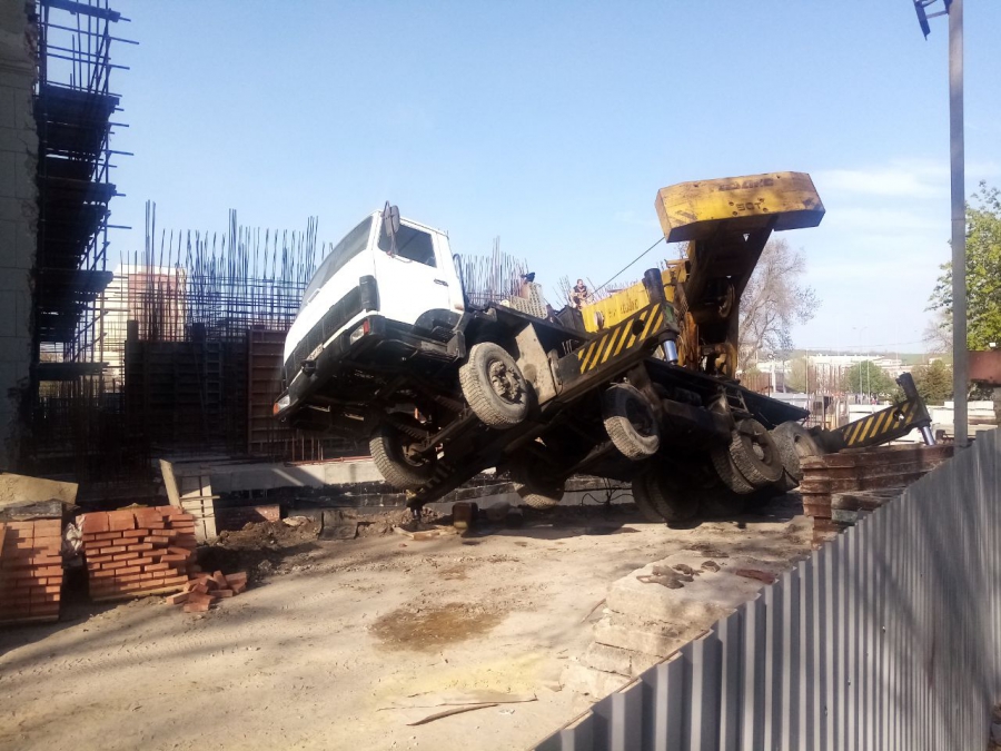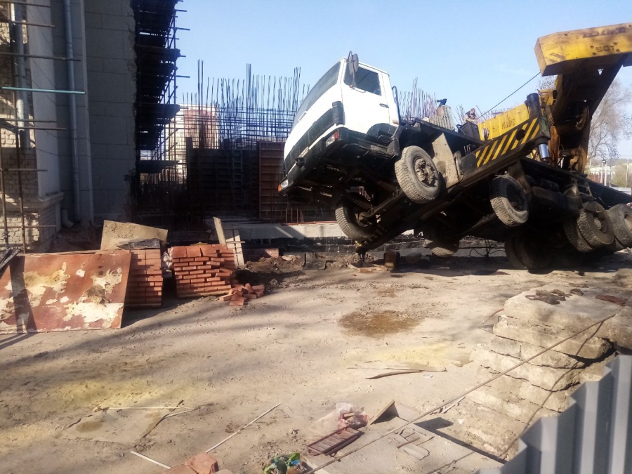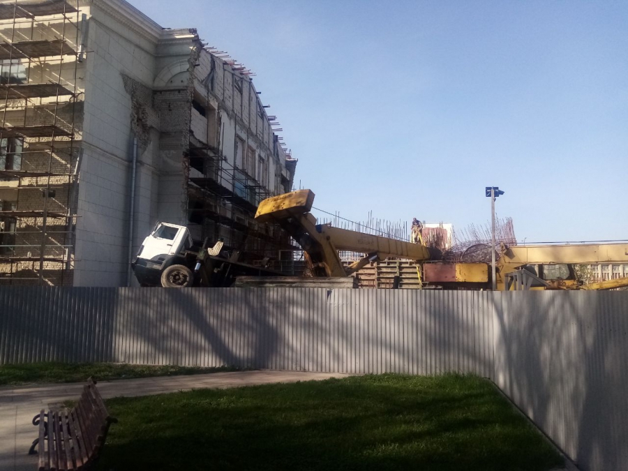 Сегодня в Саратове на строительной площадке театра оперы и балета опрокинулся автокран.