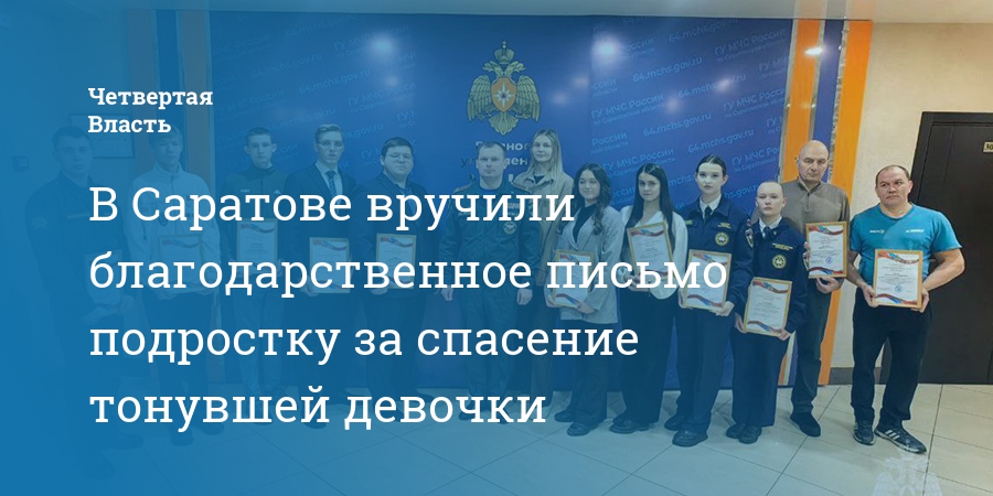 В Саратове вручили благодарственное письмо подростку за спасение тонувшей девочки