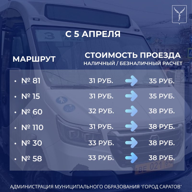 С 5 апреля изменения коснутся также маршрутов №№3, 15, 19, 23, 30, 46, 58, 60, 64Д, 81, 94 и 110 (от 35 до 38 рублей).