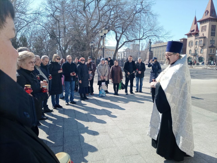 Сегодня в Саратове у храма «Утоли моя печали» состоялось траурное мероприятие в память о жертвах террористического акта в концертном центре «Крокус Сити Холл». Собрались представители общественных организаций, органов власти и жители города. Настоятель храма совершил литию по невинно убиенным.