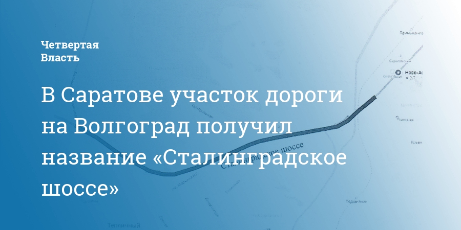 В Саратове участок дороги в сторону Волгограда получил название «Сталинградское шоссе». Соответствующее распоряжение опубликовали на сайте администрации города.