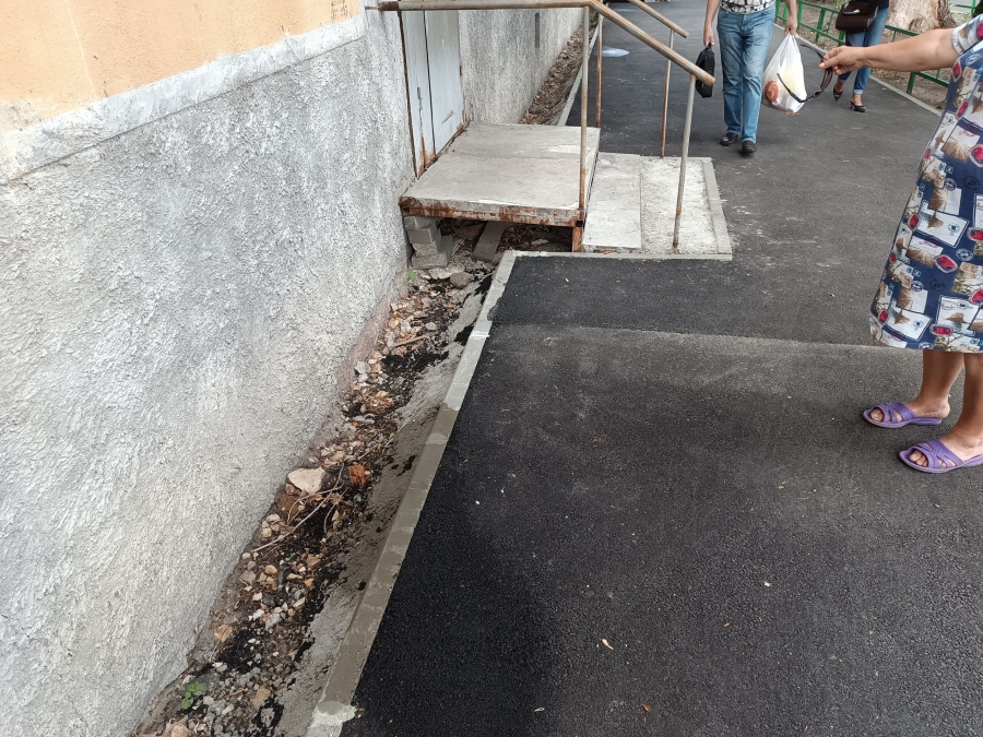 Отдельно докладчик остановился на дворе по адресу Южная, 40 и 42. Здесь «подняли» тротуар и вместо отмостки вдоль дома получилась канава. Управляющая компания с прошлого года никаких мер не приняла. В результате дома подтапливаются, а жители 3 подъезда дома №40 вынуждены «запрыгивать» на ступеньки крыльца через канаву.