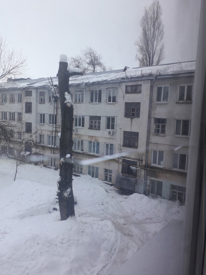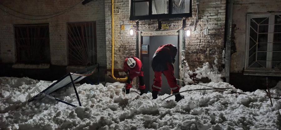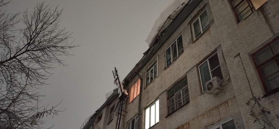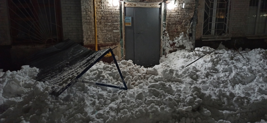 В Саратове упавший снег обрушил козырек подъезда и заблокировал дверь