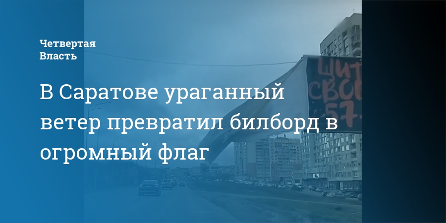 В Саратове ураганный ветер превратил билборд в огромный флаг