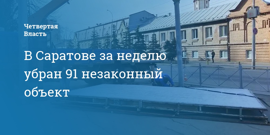 На территории Саратова за прошедшую неделю демонтировали 91 незаконный объект. Об этом сообщает глава города Игорь Молчанов в своем канале в «Максе».