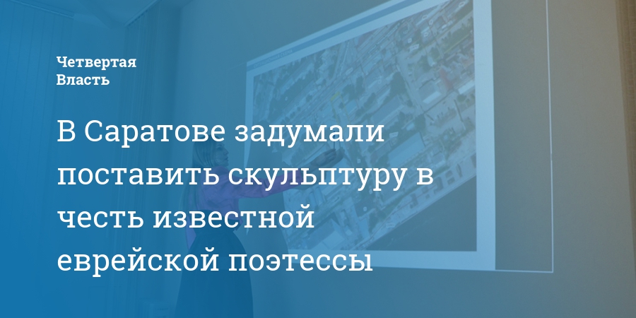 В Саратове может появиться скульптура «Поэтесса», посвященная известной еврейской поэтессе, уроженке нашего города Рахель Блувштейн. Инициаторами установки фигуры выступили представители одного из ООО, вопрос рассмотрели накануне в комитете по архитектуре мэрии.