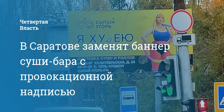 Ранее саратовцев возмутил рекламный щит на пересечении Навашина и Танкистов. Дизайнерское оформление фразы «Я худею» намекает на другой подтекст. Многие жители посчитали вывеску неприемлемой и не оценили креатив рекламщиков.