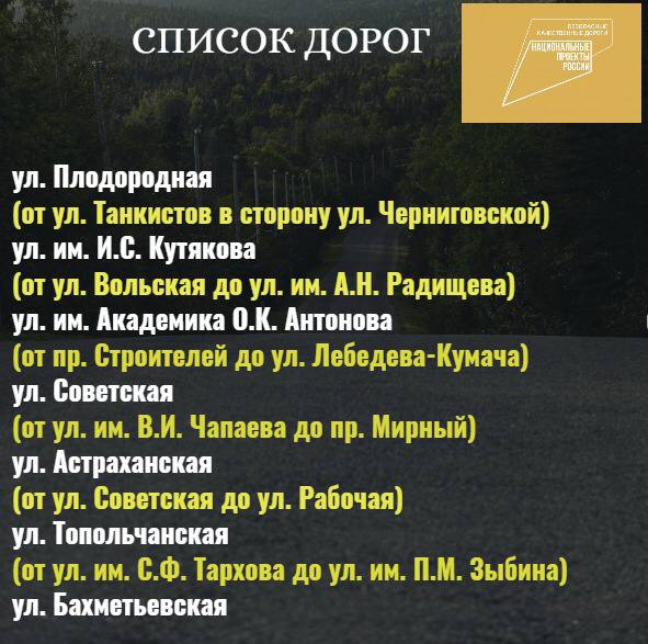 -дорогу на Усть-Курдюм (от дороги на 2-ю Гуселку до улицы Менякина),