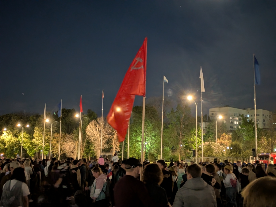 Это финальное действо Дня Победы в этом году притянуло к себе тысячи людей. На Театральной площади собрались в основном молодые люди. Многие пришли с маленькими детьми. Собравшихся увидело то, что доступ к площади был свободным, не было заграждений и проверочных рамок, какие обычно делаются на массовых мероприятиях. При этом шествие «Бессмертного полка» в Саратове и области было запрещено.