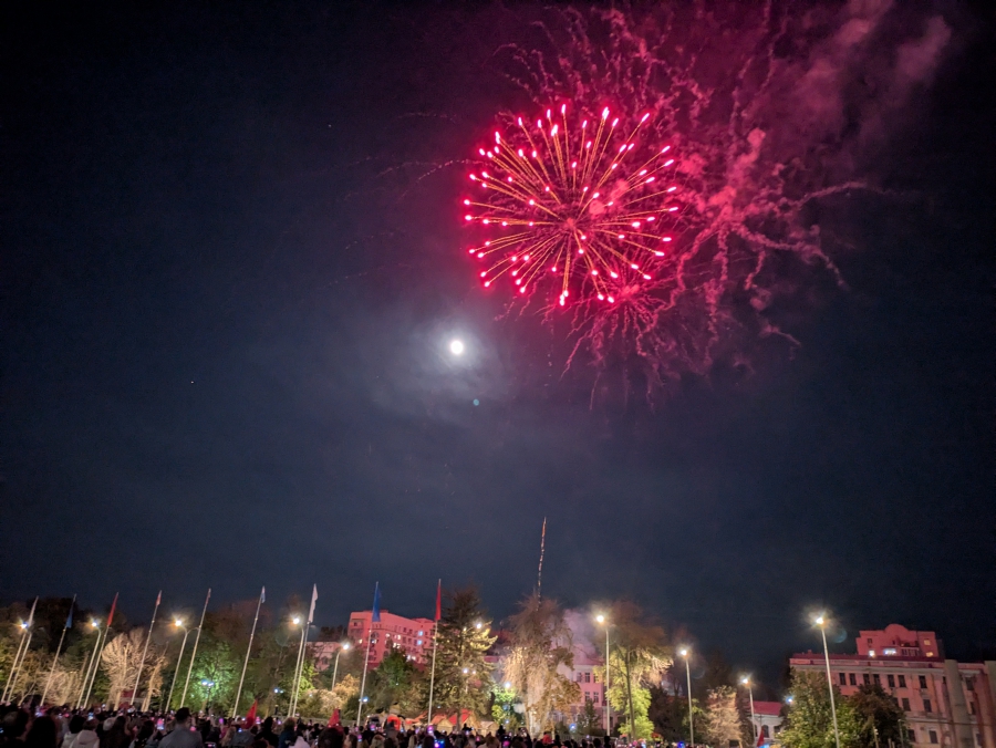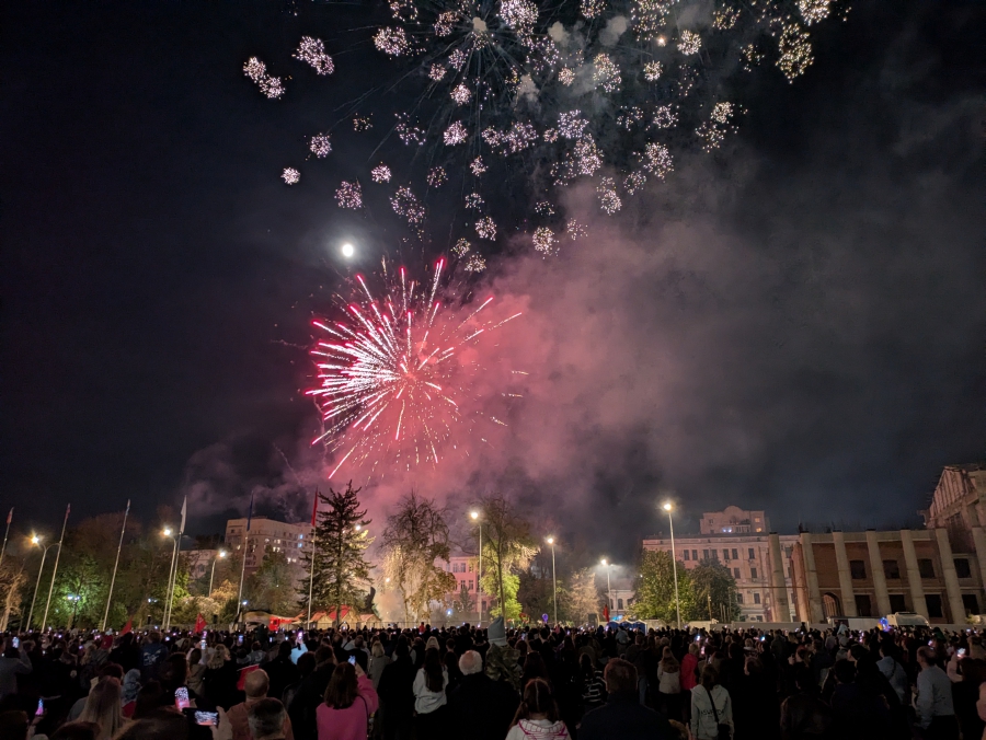 Несколько предыдущих лет обходились без салюта, либо его запускали в парке Победы, куда добраться было тяжелее, чем на главную площадь Саратова. В этот раз был двойной салют, так же и в парке Победы.