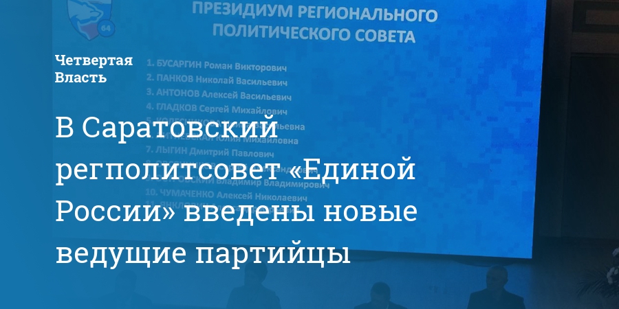 В Саратовский регполитсовет «Единой России» введены новые ведущие партийцы