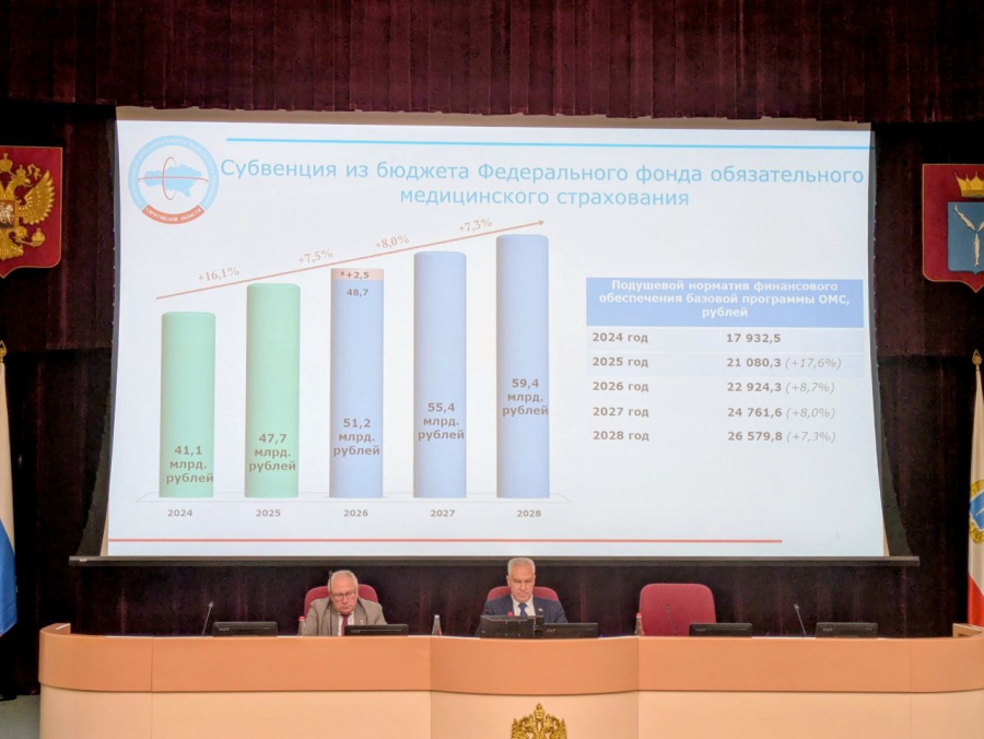 Бюджет ТФОМС на 2026 год составит 51,9 млрд рублей, а на 2027 год еще больше – 56,7 млрд рублей, на 2028 год – 60,1 млрд рублей. Наибольшая доля дохода бюджета приходится на субвенцию из федерального фонда. В 2026 она составит 98,7%. С учетом распределенного остатка резерва федерального фонда субвенция увеличена на 3,5 млрд рублей в сравнении с 2025 годом и составляет 51,2 млрд рублей в 2026 году.
