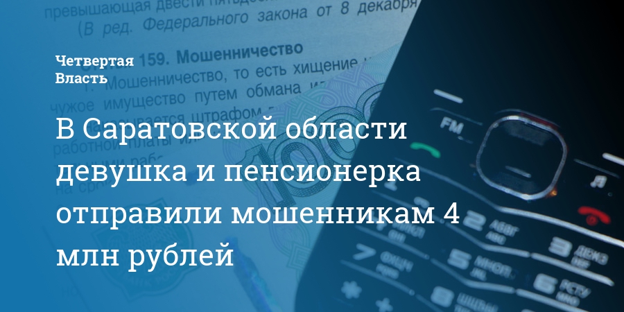 В Саратовской области девушка и пенсионерка отправили мошенникам 4 млн рублей