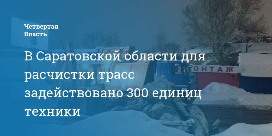 В Саратовской области в связи с обильным снегопадом задействовано 300 единиц техники. Об этом рассказали в пресс-службе регионального министерства дорожного хозяйства.