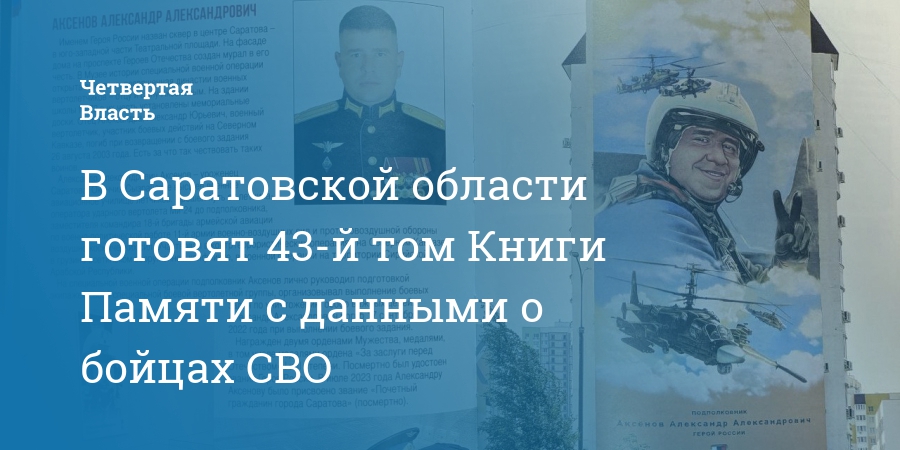 В Саратовской области завершают подготовку к изданию 43-го тома региональной Книги Памяти, в которую могут добавить новый раздел и данные о семьях бойцов СВО. Данную тему сегодня осветил на совещании в областной думе председатель комитета по делам ветеранов, Герой России Александр Янклович («Единая Россия»).
