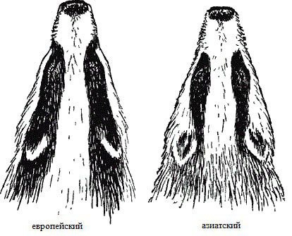 Охотникам напомнили, что основное отличие азиатского барсука от европейского заключается в окраске морды. У азиатского от конца морды через глаз проходит узкая черная полоса. За глазом она становится совсем тонкой, уходит выше уха и там заканчивается. Белая полоса, проходящая по верху головы, достаточно короткая и обычно не доходит до затылка.