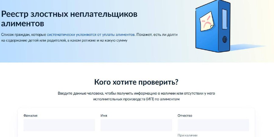 На портале Госуслуг запустили реестр злостных неплательщиков алиментов. Помимо этого, также можно узнать сумму долга и регион, в котором проходит исполнительное производство.