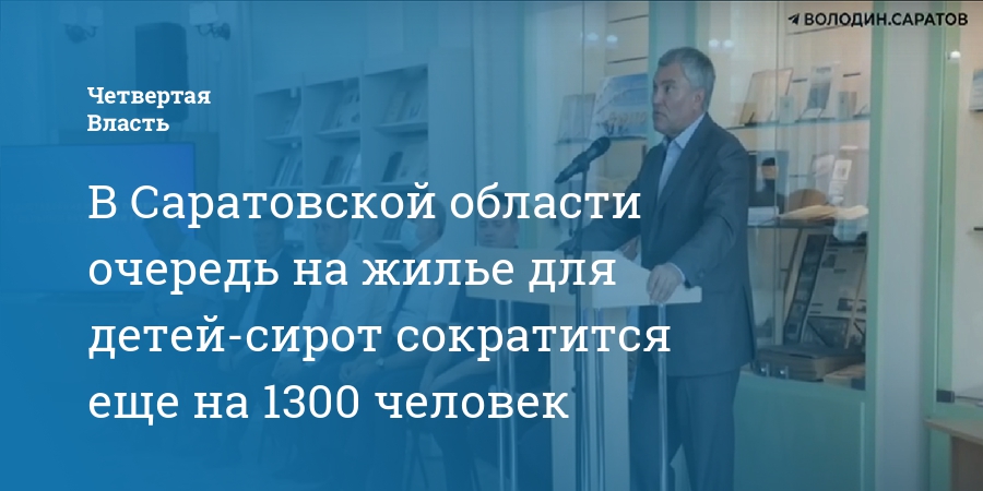 В Саратовской области в 2023 году очередь на жилье для детей-сирот региона сократится еще на 1300 человек. Об этом сообщают в телеграм-канале «Володин Саратов» сторонники председателя Государственной Думы Вячеслава Володина.