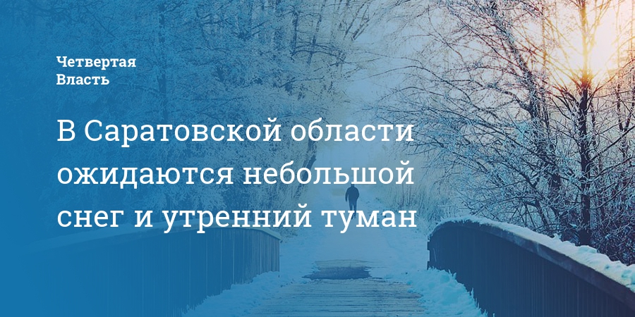 Сегодня, 9 февраля, в Саратовской области утром появится туман и изморозь, выпадет небольшой снег. Погода ожидается облачной с пояснениями, ветер будет западным и северо-западным 4-9 м/с. Температура воздуха составит от -4 до -9 градусов.