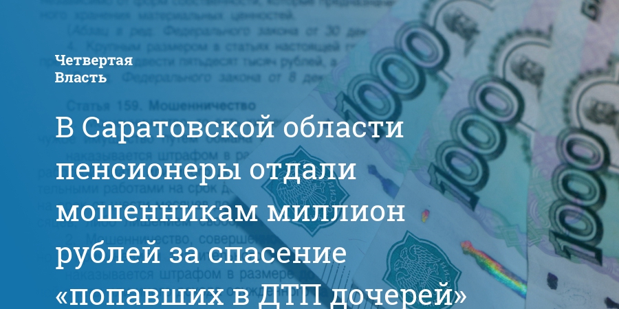 В Саратовской области пенсионеры отдали мошенникам миллион рублей за спасение «попавших в ДТП дочерей»