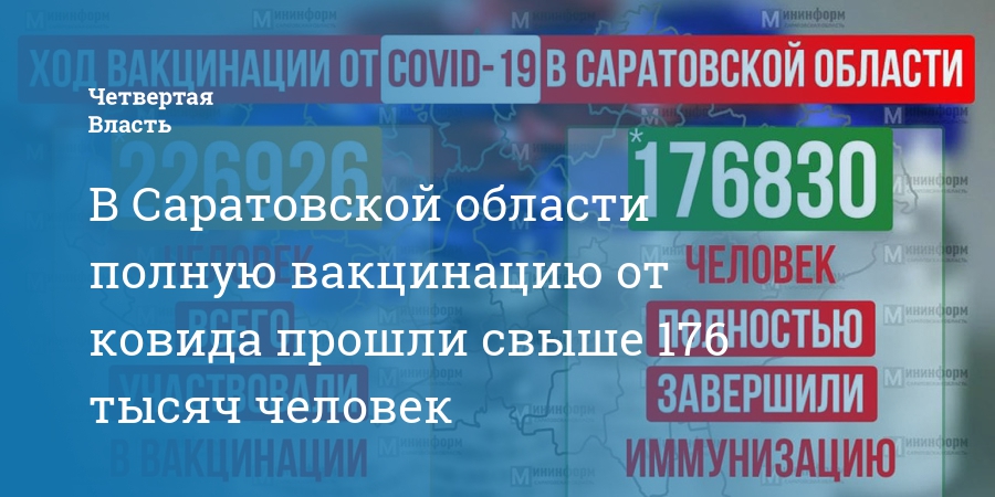 В Саратовской области полную вакцинацию от коронавируса завершили 176830 человек. Таковы данные телеграм-канала Время Саратовское. Официально.