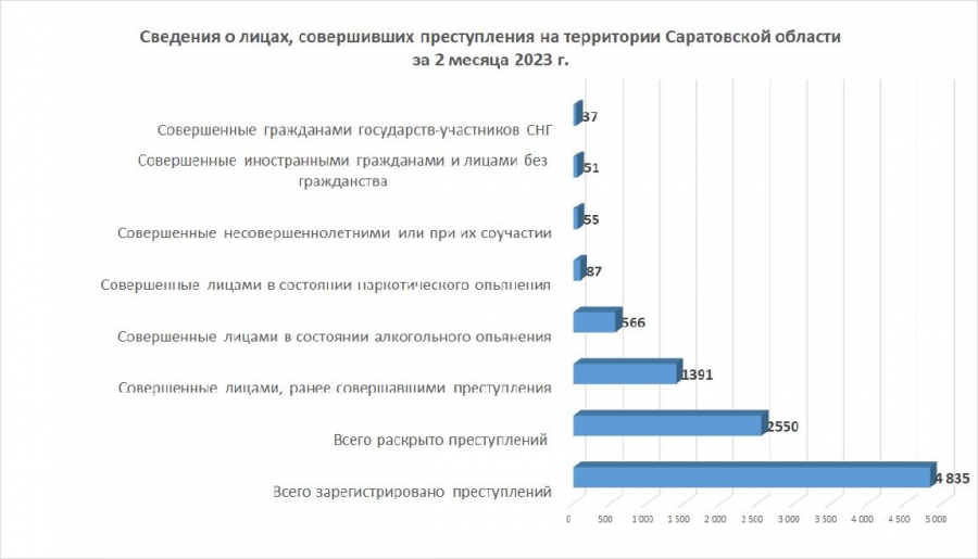 В Саратовской области за 2 месяца 2023 года половину всех преступлений совершили лица с криминальным прошлым. Данные статистики опубликовала региональная прокуратура.