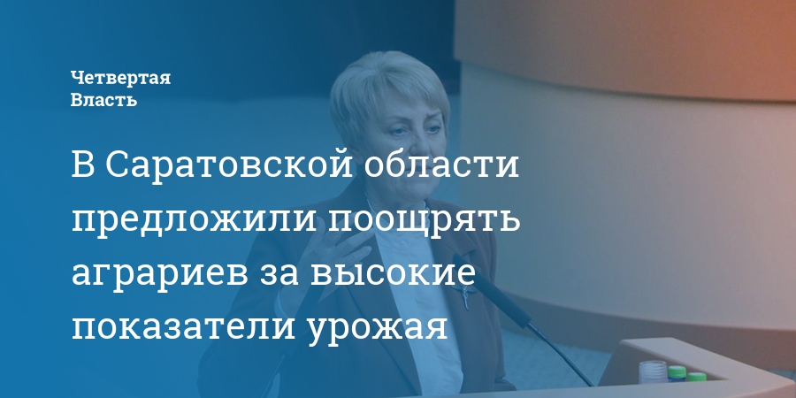 В Саратовской области предлагают поощрять за высокие показатели отрасль сельского хозяйства. С таким предложением на заседании областной думы выступила председатель комитета по аграрным вопросам, земельным отношениям, экологии и природопользованию Антонина Галяшкина («Единая Россия»).