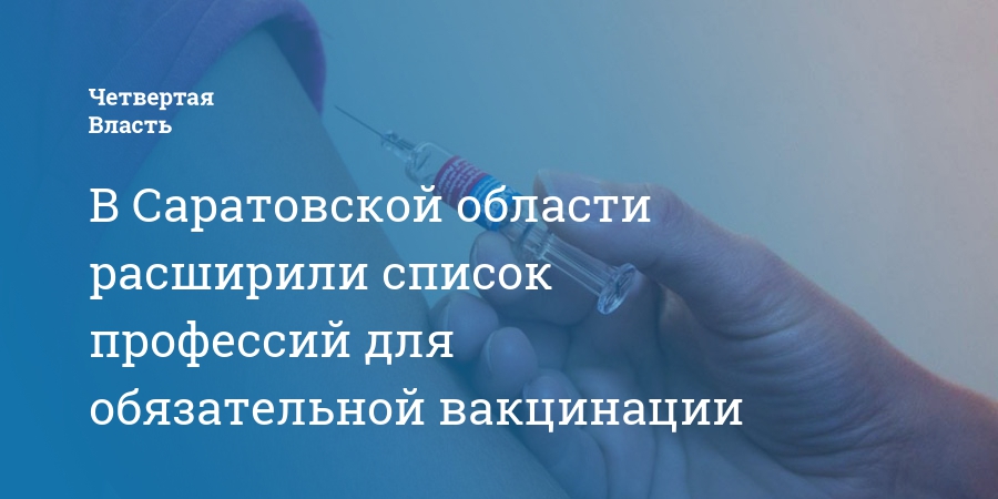 Ранее в список профессий с обязательной вакцинацией от ковида в Саратовской области вошли: государственные гражданские служащие, муниципальные служащие, чиновники уровня местного самоуправления, работники образования, медицины, соцобслуживания, сферы услуг, транспорта, связи, гостиниц и других, связанных с обслуживанием населения.