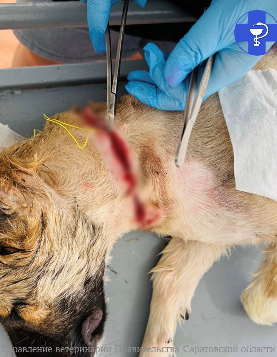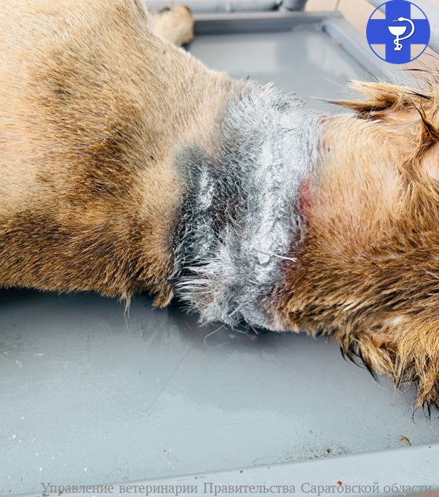 В Саратовской области ветеринары спасли щенка с вросшим в шею ошейником