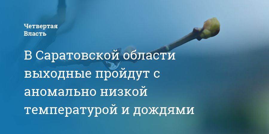 В Саратовской области выходные дни пройдут с прохладной погодой и кратковременными локальными дождями. Об этом рассказала «Четвертой Власти» замруководителя областного Гидрометцентра Светлана Цветайло.
